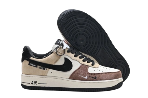 The is the Nike Air Force 1 ’07 Low sneakers, featuring a multi-panel colorway and a unique “The North Face” hangtag.