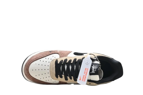 - Specific Colorway Details: This pair features white leather on the toe box and side panels, brown overlays around the toe and heel, and beige suede on the midfoot and heel tab. It has a black Swoosh with a white outline and black laces.