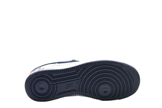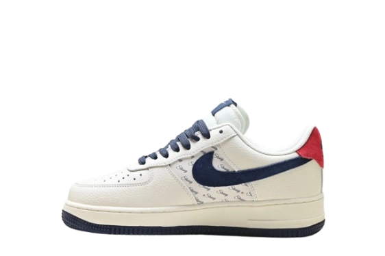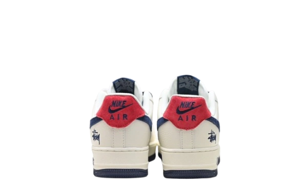 This is the Nike Air Force 1 x Stüssy collaboration in a white, navy blue, and red colorway, sometimes referred to as “AF-1 Stussy Blue Red”.